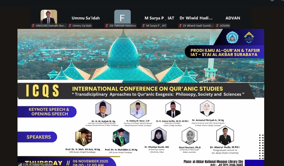 Bojonegoro, 6 November 2025 – Salah satu dosen Program Studi Magister Pendidikan Agama Islam (MPAI) Pascasarjana Universitas Nahdlatul Ulama Sunan Giri (UNUGIRI) Bojonegoro kembali menorehkan prestasi akademik dengan berpartisipasi dalam kegiatan International Conference on Qur’anic Studies (ICQS) tahun 2025 yang diselenggarakan di STAI Al Akbar Surabaya.